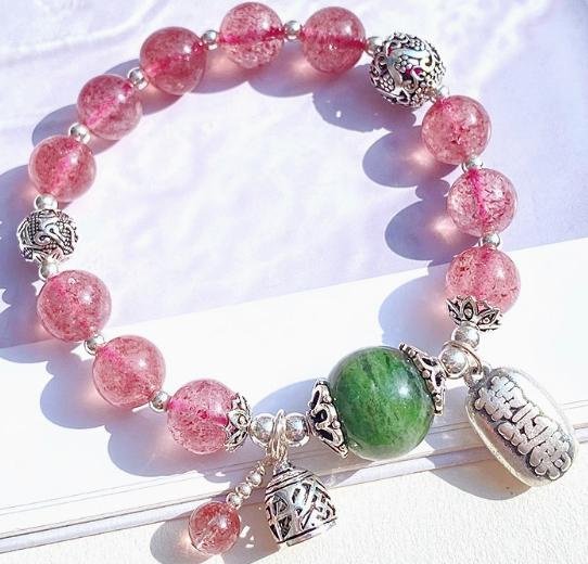 時根坊天然綠透輝石冰種草莓晶粉紅水晶 手串(14-20cm)
