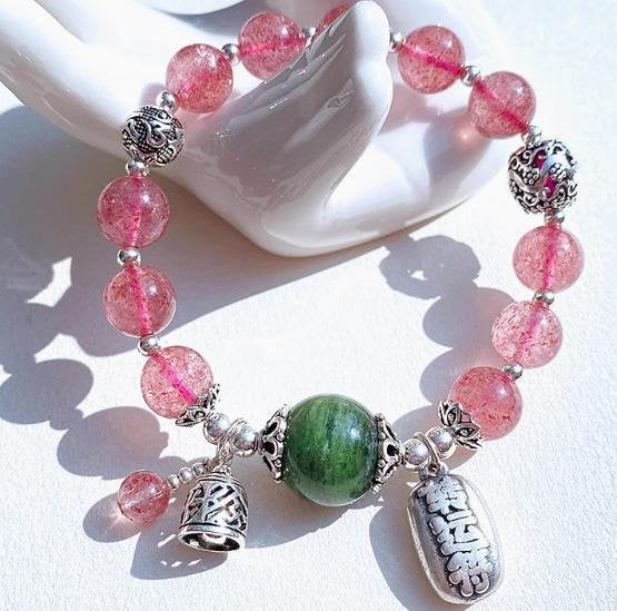 **【時根坊|天然綠透輝石冰種草莓晶粉水晶 手串】**