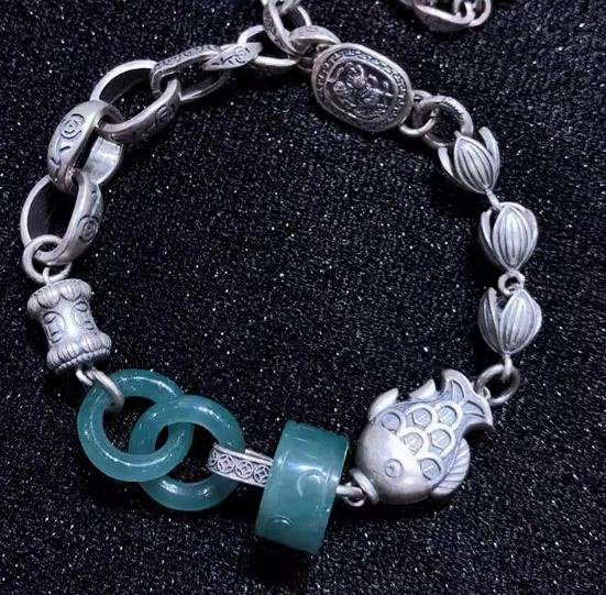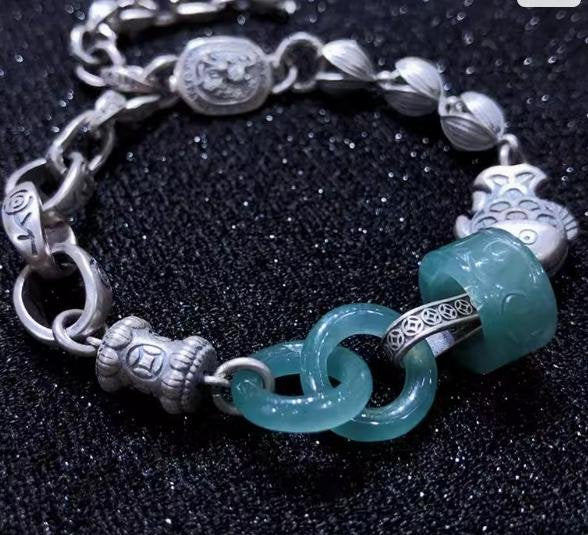 時根坊天然A貨翡翠環環相扣冰種 手串(14-20cm)