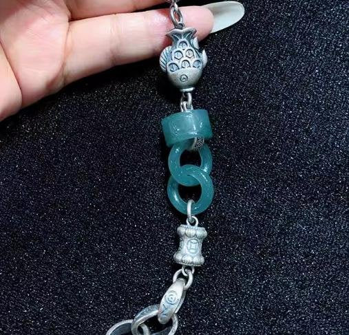 精選天然A貨冰種翡翠,質地剔透如凝冰,清潤光澤流轉。獨特「環環相扣」設計,象緣分相繫,福氣綿延不絕。