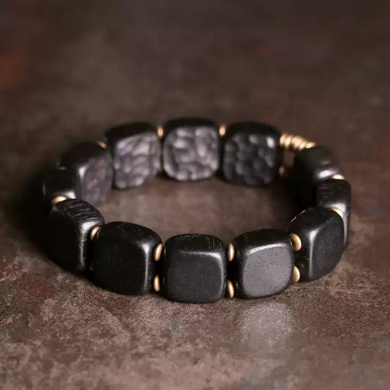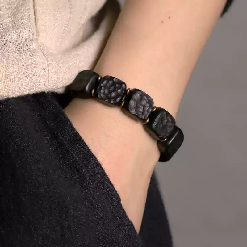 時根坊曲尾花黑檀手串粗面質感復古手鏈